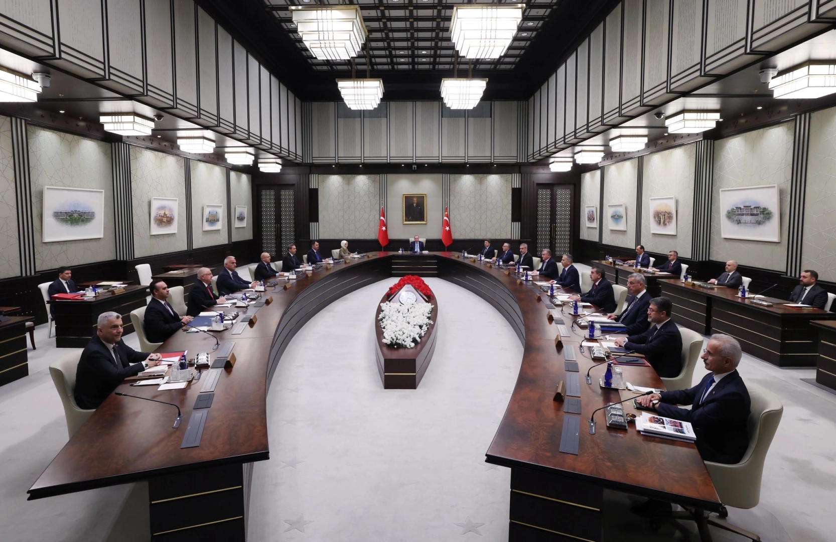Cumhurbaşkanlığı Külliyesi'nde gerçekleştirilen Kabine Toplantısı, saat 15.35'te başladı. Cumhurbaşkanı Erdoğan başkanlığındaki toplantıda, başta 'Terörsüz Türkiye' sürecinde kaydedilen aşama ile Suriye'nin bazı bölgelerinde faaliyetini sürdüren SDG meselesi, TBMM komisyonunda devam eden 2026 bütçe görüşmeleri, Rusya ile Ukrayna arasındaki ateşkes çabaları ve Gazze'deki son durum ile dış politikadaki gelişmelerin ele alınacağı belirtildi. Toplantının ardından Cumhurbaşkanı Erdoğan'ın açıklama yapması bekleniyor. (DHA)