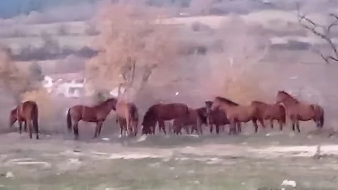Merkeze 10 kilometre uzaklıkta bulunan At Yaylası'nda bulunan yabani yılkı atları, dün akşam saatlerinde şehir merkezinde bulunan Kürkçüler Mahallesi'nde görüldü. Sürü halinde yiyecek arayan yılkı atları, bir vatandaş tarafından cep telefonuyla görüntülendi. (DHA)