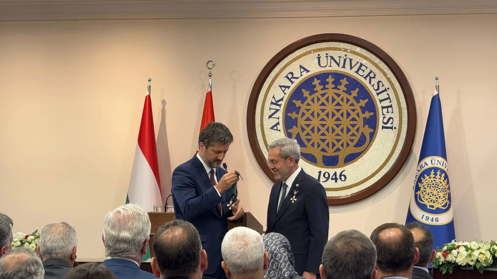 Ayşenur DEMİRTAŞ GÜL-Batuhan DURNAOĞLU/ANKARA, (DHA)- ANKARA Üniversitesi Rektörü Prof. Dr. Necdet Ünüvar, Macaristan Devleti tarafından Liyakat Nişanı'na layık görüldü.Ankara Üniversitesi Rektörü Prof. Dr. Ünüvar, Macaristan Büyükelçisi Viktor Matis'in teklifi, Macaristan Dışişleri ve Ticaret Bakanı Peter Szijjarto'nun desteği ve Macaristan Cumhurbaşkanı Sulyok Tamas'ın tensipleriyle Macar-Türk kültürel ve yükseköğretim münasebetleri ve Türkiye'deki 'Hungaroloji' eğitimine katkılarından dolayı Macar Liyakat Nişanı Komutan Haçı Devlet Nişanı'yla taltif edildi. Ankara Üniversitesi'nde yapılan törende; Macaristan Büyükelçisi Viktor Matis tarafından Prof. Dr. Ünüvar'a, Macaristan Devlet Liyakat Nişanı verildi. Törene, Dışişleri Bakan Yardımcısı Mehmet Kemal Bozay ile eski TBMM Başkanı Binali Yıldırım, akademisyenler ve davetliler katıldı. 'TÜRK TARİHİNİ EN İYİ ANLATAN MACAR KAYITLARIDIR'Programda konuşan Bakan Yardımcısı Bozay, Macar büyükelçiliklerinde mutlaka bir Türkolog bulunduğunun altını çizerek, "Onlardan aldığım bilgiler ve sonrasında yaptığım çalışmalarda gördüğüm Macar tarihi kayıtları dünyada Türk tarihini en iyi anlatan, aynı zamanda da en objektif kayıtlardır. Bunları tabii okuyacak sayıda elemanımız olmadığı için bazıları geride kalıyordu. Ve belki de tozlu raflarda kalacaktı. Ama Sayın Rektörümüzün, üniversitenin çabasıyla her yıl ortaya çıkacak 30 mezunumuzla yapacaklarımız var. Bu bölümün önümüzdeki dönem mezunlarının da çok faydalı işler, ülkemizin refahına ve bölgenin istikrarına katkıda bulunacağını ve bu uzmanlarımızla mezunlarımızla 3'üncü ülkelere Macaristan ile birlikte açılacağımızı düşünüyoruz" dedi.'TÜRKİYE-MACARİSTAN İLİŞKİLERİ ÇOK İYİ DURUMDA'Büyükelçi Matis ise Türkiye ve Macaristan ilişkilerinin çok iyi bir durumda olduğunu söyledi. Bu durumun devam etmesi için çalışan insan sayısının artması gerektiğine vurgu yapan Matis, "Sayın Rektörüm hep bizimleydi. Tabii ki bu uzun bir yolculuk. 1'inci dönemi sırasında da özellikle Hungaroloji anabilim dalına daimi desteği ve Ankara Üniversitesi ile Macar üniversiteleri arasındaki ilişkilerin geliştirilmesi için çok fazla çabası vardı. Sayın Rektör bizim için yakın bir dost. Sayın Rektöre bütün ülkem adına, milletim adına teşekkürlerimi iletmek istiyorum" diye konuştu.'MACARİSTAN, TÜRKOLOJİ KONGRELERİNİN İLK KURULDUĞU ÜLKE'Prof. Dr. Ünüvar da Binali Yıldırım'ın bu kaotik çağda birbirini anlayan devletlerin daha yakın görüşmesi, daha yakın çalışması gerektiğini sık sık kendilerine tavsiye ettiğini söyleyerek, "Biz de bu doğrultuda çalışıyoruz. Bu nişan, şüphesiz bu çerçevede yaptığımız çalışmaların bir nişanesidir. Ona layık olmaya çalışacağız. Ama bunun bize sadece bir yetki değil, aynı zamanda sorumluluk verdiği inancındayım. Bundan sonra ömrümün sonuna kadar inşallah Türkiye-Macaristan ilişkilerinin çok daha iyiye gitmesi için gayret sarf edeceğime burada değerli hazirun önünde söz vermek istiyorum. Macaristan bizim için son derece kıymetli bir ülke. Macaristan Türkoloji kongrelerinin, hatta kürsülerinin ilk kurulduğu ülke" dedi. (DHA)