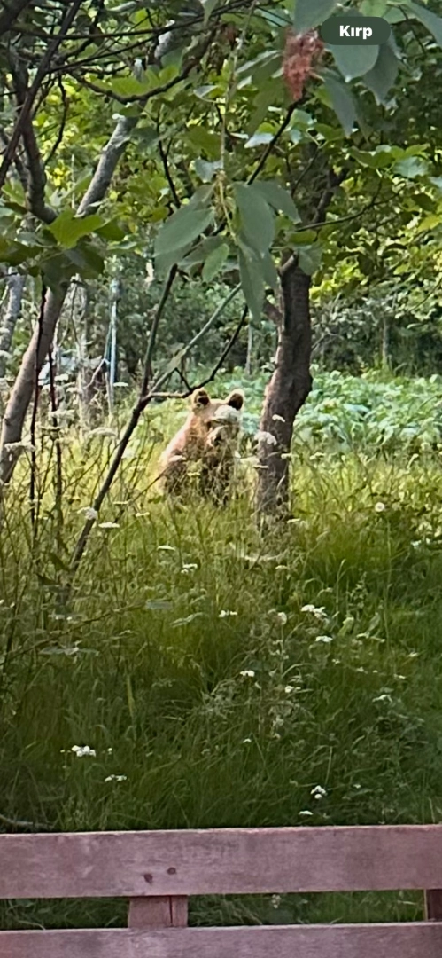 Ayhan ACAR/KURUCAŞİLE(Bartın),(DHA)- BARTIN'ın Kurucaşile ilçesinde bir evin bahçesine giren bozayı, cep telefonu ile görüntülendi. Küre Dağları Milli Parkı'ndan geldiği tahmin edilen 3 yaşlarındaki bozayı, Liman Mahallesi'ndeki bir evin bahçesine girdi. Ses duyup dışarıya bakanlar, ayıyla karşılaştı. Evlere kadar yaklaşan ayı, cep telefonu kamerasıyla görüntülendi. Ayı bahçede pençeleriyle toprağı eşelerken, kendisine seslenen vatandaşlara tepki vermedi. Ayı, daha sonra çalıların arasına girerek gözden kayboldu. (DHA)