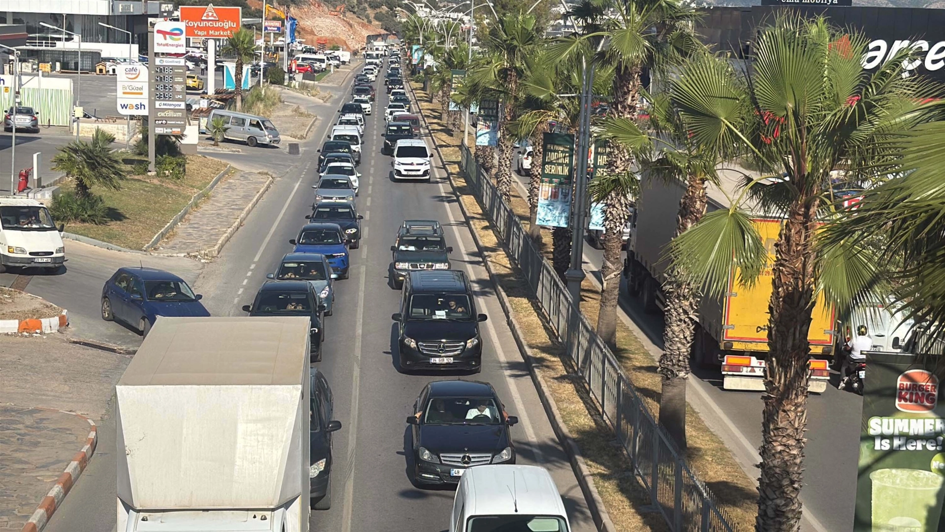 Fırat AKAY/BODRUM (Muğla), (DHA)- MUĞLA'nın dünyaca ünlü turistik ilçesi Bodrum'a, Kurban Bayramı öncesi 24 saatte 50 bin araç giriş yaptı. Polis ve jandarma ekipleri kontrol noktalarında denetimlerini sıklaştırırken, trafik zaman zaman durma noktasına geldi.Dünyanın önemli turizm merkezlerinden Bodrum'da Kurban Bayramı öncesi trafik yoğunluğu arttı. Dün saat 13.00’ten sonra 24 saatte ilçeye 50 bin araç giriş yaparken, Bodrum-Turgutreis istikametinde yer yer trafik durdu. Sürücüler 2 kilometrelik yolu yaklaşık 30 dakikada geçerken, kentin diğer noktalarında da uzun araç kuyrukları oluştu. Öte yandan, hava sıcaklığı ise 31 dereceye kadar ulaştı.POLİS, JANDARMA DENETİMLERİ ARTTIRDITedbirler kapsamında Bodrum İlçe Emniyet Müdürlüğü ve Bodrum İlçe Jandarma Komutanlığı ekiplerince denetimler sıklaştırıldı. Torba Uygulama Noktası'nda kente giren araçlara trafik ve asayiş yönünden incelemeler yapıldı. Bodrum Kaymakamı Mustafa Çit, Bodrum İlçe Jandarma Komutanı Yarbay Gökhan Kurgan ve Bodrum İlçe Emniyet Müdürü Mehmet Darendeli Torba Uygulama Noktası'nda yapılan denetimleri yerinde takip etti. Kaymakam Çit ilçeye giriş yapan vatandaşların bayramını kutladı.Denetimlerle ilgili bilgi veren Bodrum Kaymakamı Mustafa Çit, "Bayram süresi boyunca hava durumumuz çok iyi olacak. Deniz suyu sıcaklığımızın 22-24 derecelerde olmasını bekliyoruz. Her bütçeye uygun yeme-içme konaklama mekanları var. Emniyet, jandarma ve sahil güvenlik olmak üzere 699 personel 139 araçla Bodrum'da tedbirlerimizi aldık" dedi. (DHA)