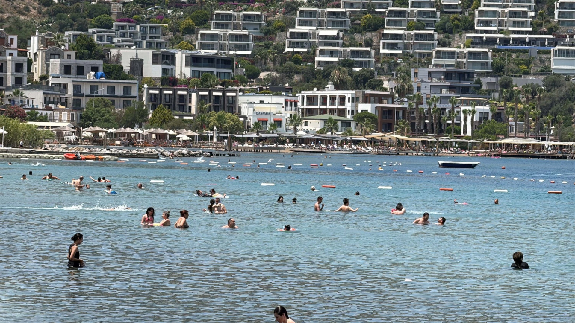 Fırat AKAY/BODRUM(Muğla), (DHA)- MUĞLA'nın dünyaca ünlü turistik ilçesi Bodrum'da, Kurban Bayramı'nın 2'nci gününde sahillerde yoğunluk yaşandı. Yerli ve yabancı turistler denize girerek sıcak ve güneşli havanın keyfini çıkardı.Dünyanın önemli turizm destinasyonlarından Bodrum'da Kurban Bayramı'nın 2'nci gününde sahiller doldu. Kumbahçe, Gümbet, Bitez, Ortakent, Yalıkavak, Gündoğan ve Türkbükü sahilleri tatilci akınına uğradı. Kentte hava sıcaklığı 33 derece, deniz suyu sıcaklığı 22 derecelere ulaştı. Yerli ve yabancı turistlerden bazıları denize girmeyi tercih ederken bazıları ise kumsalda güneşlenmeyi tercih etti. Özel plaj işletmelerinde ise bazı vatandaşlar düzenlenen etkinliklere katıldı. (DHA)FOTOĞRAFLI