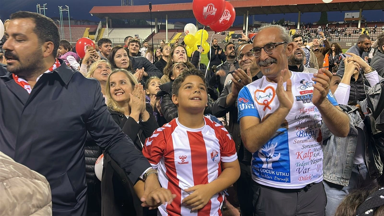 Nazif Cemhan ŞEN/ ÇANAKKALE, (DHA)- ÇANAKKALE’de, 6 yaşında yakalandığı lösemi hastalığını 5 yıl sonra yenen Gencay Demir (11) için stadyumda amatör küme maçı öncesi yüzlerce balon gökyüzüne bırakıldı.