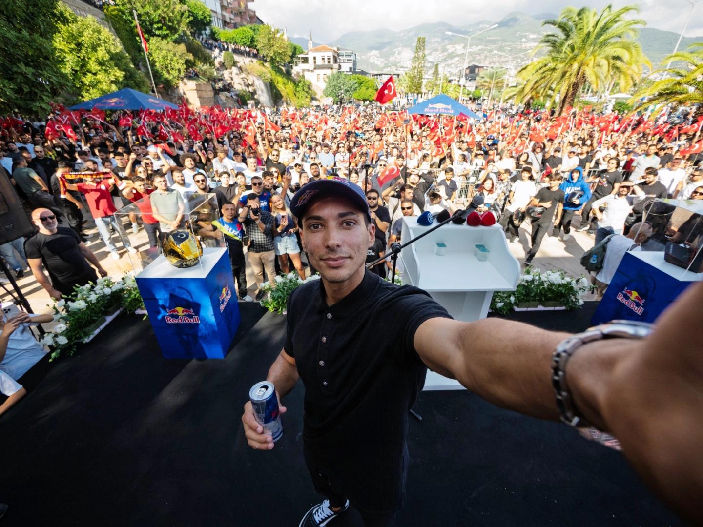 Etkinlik boyunca alanı dolduran kalabalık, Türk bayrakları ve konfeti gösterileriyle milli sporcuyu dakikalarca alkışladı. Minik çocuklar, kasklarına imza almak için yarışırken; gençler 'El Turco' tezahüratlarıyla coşkuya ortak oldu. Program sonunda, Toprak Razgatlıoğlu'nun şampiyonluk kupası ile sahnede çekilen fotoğrafı büyük alkış topladı. (DHA)