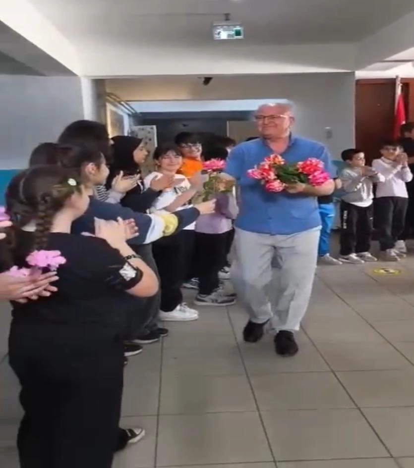 ESKİŞEHİR, (DHA)- ESKİŞEHİR’in Sarıcakaya ilçesinde emekli olan ortaokul müdürü Vedat Duman’a (65) meslektaşları ve öğrencileri sürpriz veda etkinliği düzenledi. ‘Hatıran Yeter’ şarkısı eşliğinde merdivenlere dizilen öğrenciler çiçek verip Duman’ı alkışladı.Sarıcakaya ilçesindeki İmam Hatip Ortaokulu’nda 2 yıldır okul müdürü olan ve eğitim yılı sonu emekliye ayrılacak Vedat Duman’a öğrencileri sürpriz veda etkinliği düzenledi. Okula gelen Duman, öğrencileri tarafından kapıda meşale ve konfetilerle karşılandı. Bu sırada, ünlü müzik grubu Zakkum’un seslendirdiği ‘Hatıran Yeter’ isimli şarkı çalındı. Öğrenciler okulun girişinden odasına kadar tek sıraya geçerek, Vedat Duman’a çiçek verip alkışladı. Öğrenci ve meslektaşlarının jesti karşısında duygulanan Duman gözyaşlarına da hakim olamazken, etkinliği düzenleyenlere teşekkür etti. (DHA)