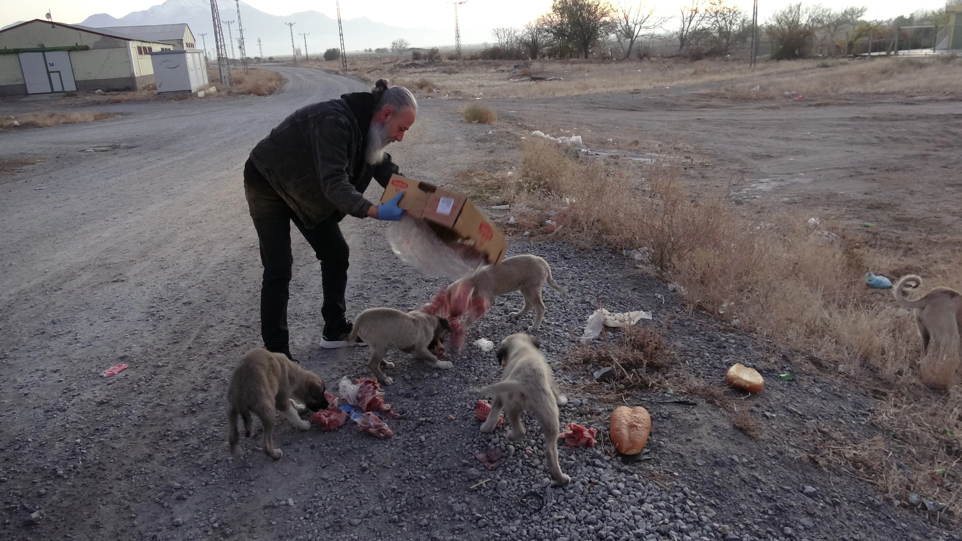 Kentte, özel sektörde dağıtım elemanı olarak çalışan 3 çocuk babası İzzet Arlı, iş için her gün kent merkezinde 70 kilometre uzaklıktaki Yeşilhisar ilçesine gidiyor. İlçede dağıtım görevinin yanı sıra esnaftan gönüllü olarak simit, ekmek, kemik ve yiyecek toplayan Arlı, 8 farklı mahalledeki sokak hayvanlarını besliyor. Patili dostlarla her gün gönüllü olarak ilgilendiğini anlatan Arlı, “Saat 02.00- 02.30 gibi Kayseri’den çıkıyorum. İlk olarak sokak hayvanlarını besliyorum. Yeşilhisar’da yaklaşık 8 mahallenin dağıtımını yapıyorum. Burada karşılaştığım sokak hayvanlarına, bir gün öncesinden kasaplardan topladığım tavuk, et, kemik gibi ürünleri patili dostlarımıza dağıtıyorum” diye konuştu.