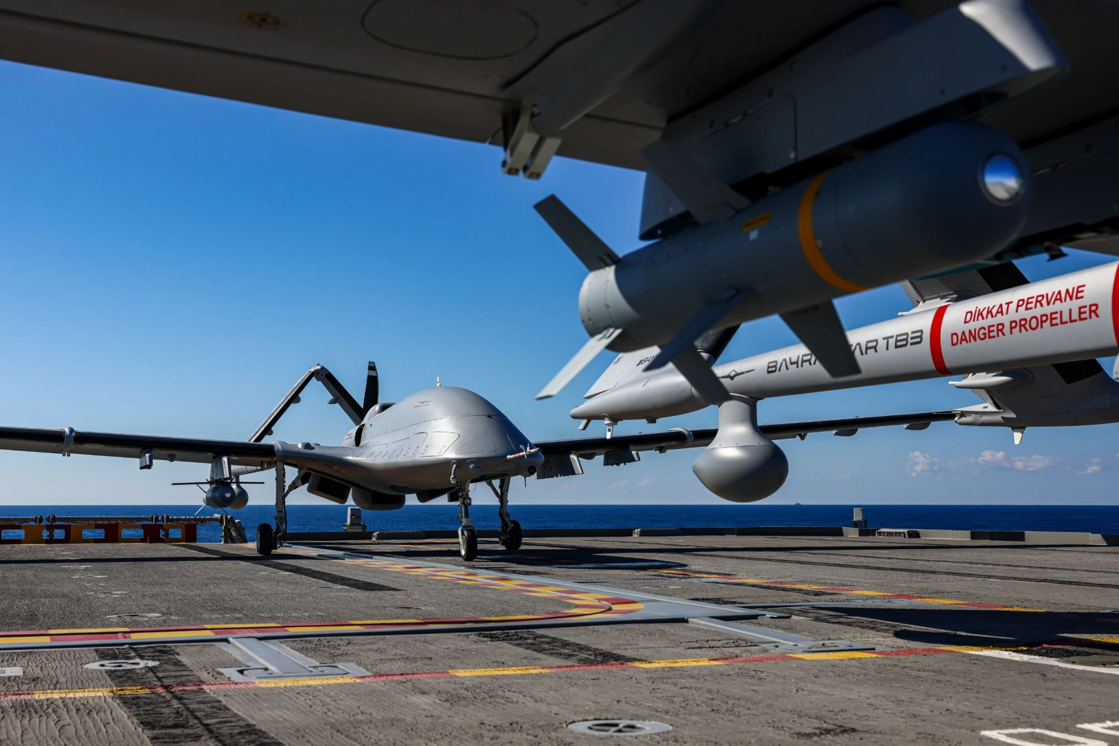 İbrahim YILDIZ/İSTANBUL, (DHA) - TÜRKİYE’NİN ilk SİHA gemisi TCG Anadolu'dan havalanan iki Bayraktar TB3 SİHA, DENİZKURDU-I/2025 tatbikatının Doğu Akdeniz'i kapsayan bölümünde hedeflerini imha etti. KKTC'den kalkarak tatbikata katılan Bayraktar Akıncı Tiha ise 3 farklı mühimmatla yaptığı atışlarda hedefleri tam isabetle vurdu. Deniz Kuvvetleri Komutanlığı'nın en büyük tatbikatlarından biri olan DENİZKURDU-I/2025 kapsamında Türkiye'nin Mavi Vatan'daki gücünün simgesi haline gelen TCG Anadolu gemisinden art arda iki Bayraktar TB3 SİHA havalandı. İlk hava aracı olan Bayraktar TB3 PT-1R, Roketsan tarafından geliştirilen iki adet MAM-L akıllı mühimmatı ile gerçekleştirdiği ikili salvo atışlarıyla hedefleri tam isabetle vurdu. Gemi güvertesinden havalanan ikinci SİHA Bayraktar TB3 PT-4 ise yine Roketsan üretimi olan daha yüksek tahrip gücüne sahip MAM-T mühimmatı ile hedefini imha etti. SİHA atışın ardından Dalaman'a intikal etti. AKINCI'DAN STRATEJİK MESAJTatbikat kapsamında eş zamanlı olarak Kuzey Kıbrıs Türk Cumhuriyeti'nden (KKTC) havalanan Bayraktar Akıncı Taarruz İnsansız Hava Aracı, kanatları altında taşıdığı ASELSAN üretimi Tolun, Roketsan üretimi TEBER-82 Güdüm Kiti ve Baykar üretimi KEMANKEŞ-1 Mini Akıllı Seyir Füzesi ile üç farklı hedefi başarıyla vurdu. Milli TİHA başarılı görevin ardından Doğu Akdeniz’den Tekirdağ Çorlu'daki Akıncı Uçuş Eğitim ve Test Merkezi’ne uçarak intikal etti. (DHA)