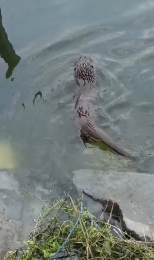 Altunay TUGA/İSTANBUL,(DHA)-KÜÇÜKÇEKMECE'de Menekşe Deresi'nde nesli tükenme tehlikesi altında bulunan tatlı su samuru cep telefonu kamerasıyla görüntülendi.