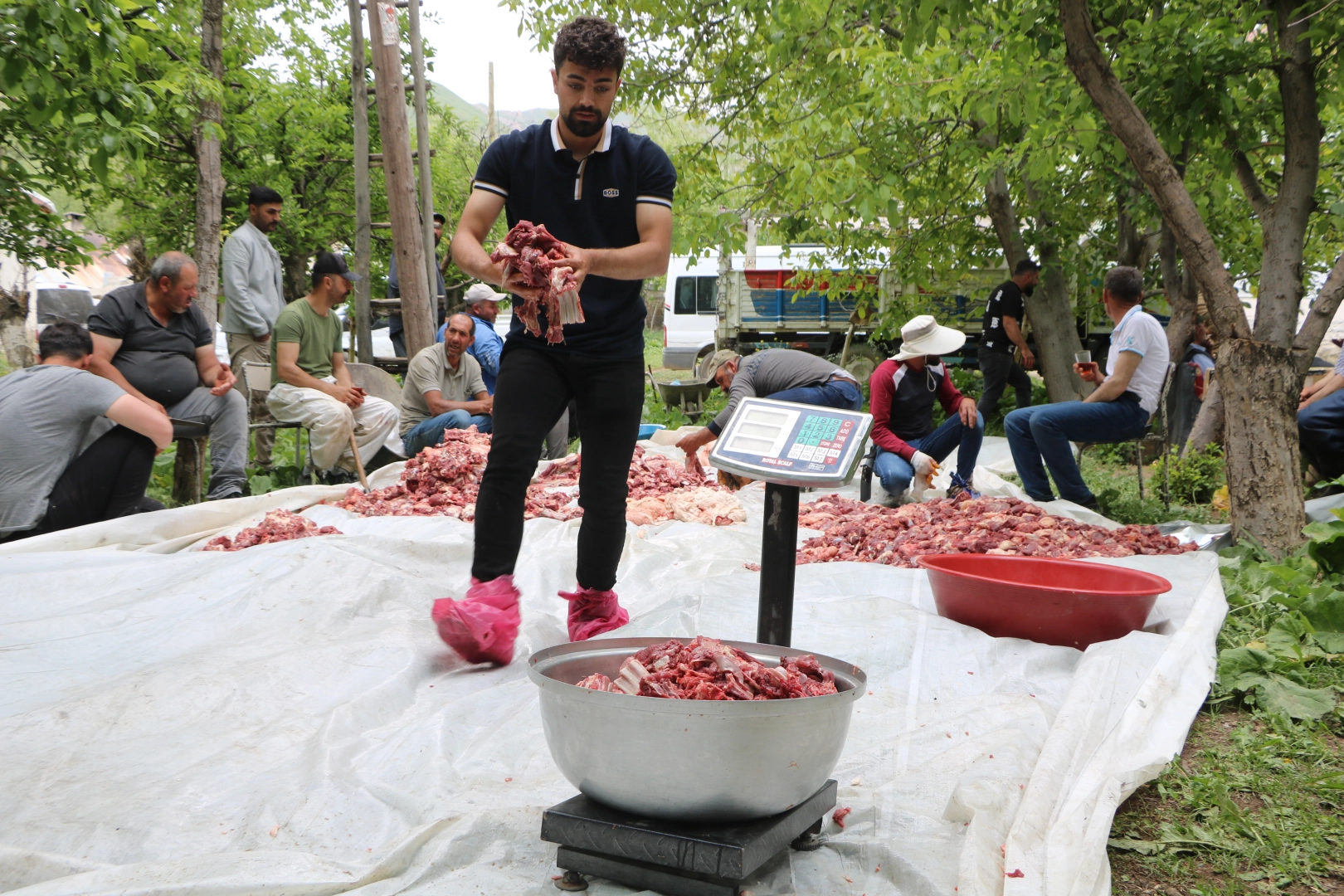 Yaşar KAPLAN/YÜKSEKOVA (Hakkari), (DHA)- HAKKARİ'nin Yüksekova ilçesine bağlı Kısıklı köyünde yaşayanlar, bir asırdır devam ettirdikleri geleneklerini bu bayramda da sürdürdü. Köylüler, köy meydanında kesilen 100 küçükbaşın etlerini ayrıştırdıktan sonra herkese eşit şekilde dağıtımını yaptı. Köylülerden Nedim Özdemir, bu geleneğin bölgedeki bazı köylere de örnek olduğunu söyledi. Yüksekova’ya 25 kilometre uzaklıktaki 200 hane ve 1500 nüfuslu Kısıklı köyünde yaşayanlar, bir asırlık kurban kesme ve et dağıtma geleneğini bu bayramda da devam ettirdi. Bayram namazı sonrası, köy meydanına getirilen 100 küçükbaş hayvan kesilip, etleri eşit bir şekilde ayrıştırıldı. Kurbanlık etler, daha sonra köydeki 200 haneye dağıtıldı. Köylülerden Nedim Özdemir, bu gelenek sayesinde kurban kesen, kesmeyen herkese eşit şekilde et dağıtıldığını belirterek, "Atalarımızdan gelen bu geleneğimizi günümüzde de sürdürüyoruz. Her bayram olduğu gibi bu Kurban Bayramı’nda da 100 küçükbaş hayvan kesimi yaptık. Kesilen kurbanlıkların etlerini köy meydanında eşit bir şekilde ayrıştırdık ve bu etleri köydeki tüm hanelere dağıttık. Bu geleneğimiz bölgedeki diğer bazı köylere de örnek oldu. Bizi gören bazı köyler de bunu yapmaya başladı. Zengin-fakir demeden herkese eşit et dağıtımı yapıyoruz" dedi. (DHA)