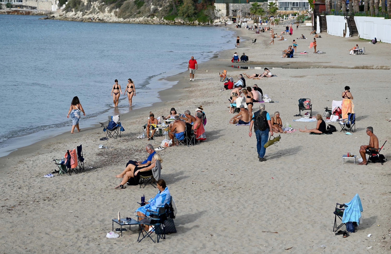 Kentte kasım ayında mevsim normallerinin üzerinde seyreden hava sıcaklığı 25,6 dereceye kadar yükselirken, deniz suyu sıcaklığı 21 derece ölçüldü. Sonbaharda denizin keyfini çıkarmak isteyen yerli ve yabancı turistler, Kuşadası'ndaki plajları doldurdu. Tatilcilerden bazıları denize girerken, bazıları güneşlenmeyi, deniz kenarında yürüyüş yapmayı, kitap okumayı ve balık tutmayı tercih etti. (DHA)