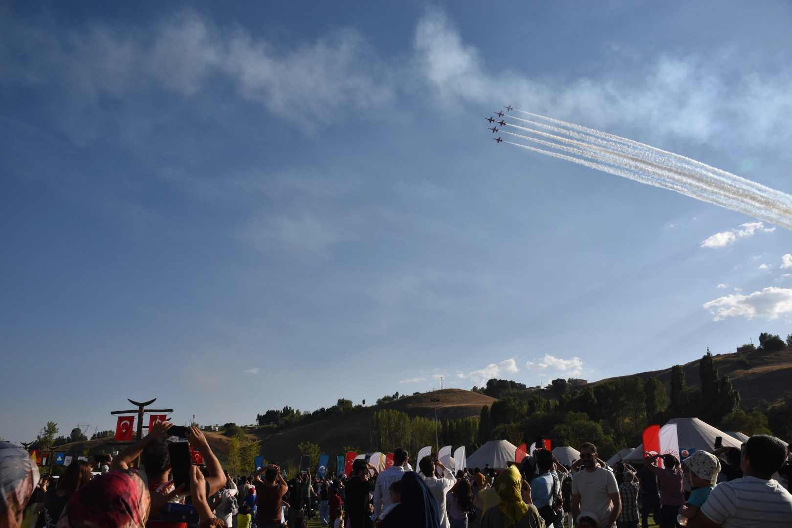 TÜRK YILDIZLARI’NIN GÖSTERİSİ NEFES KESTİ Ahlat ilçesinde, Malazgirt Zaferi'nin 954’üncü yıl dönümü etkinlikleri kapsamında Türk Hava Kuvvetleri'nin akrobasi timi Türk Yıldızları, vatandaşlara unutulmaz anlar yaşattı. Binlerce vatandaşın katıldığı gösteride gökyüzünü renklendiren akrobatik hareketler büyük alkış aldı. Gökyüzüne ay yıldız çizimiyle yapılan selamlama ise coşkuyla alkışlandı. 2 KEZ KANSERİ YENEN ELANUR İÇİN 1071 BALON UÇURULDUGösteri sonrasında duygusal anlar da yaşandı. 12 yaşında 2 kez kanseri yenen Elanur Güleş için gökyüzüne 1071 balon bırakıldı. Balonların gökyüzüne yükselişi izleyenlere duygusal anlar yaşattı. Vatandaşlar, Elanur’un azmi ve mücadelesini uzun süre alkışladı. Ceren ÇALIŞKAN / AHLAT(Bitlis), (DHA)-