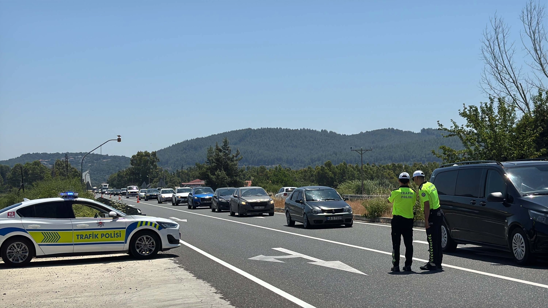 Cavit AKGÜN/MUĞLA, (DHA)- BODRUM, Datça, Marmaris ve Fethiye gibi turizm merkezlerinin bulunduğu Muğla'ya, Türkiye'nin dört bir yanından Kurban Bayramı tatili için binlerce kişi gelmeye başladı, Antalya-Muğla kara yolunda yoğunluk oluştu.Dünyaca ünlü turistlik ilçeleri bulunan Muğla'ya Kurban Bayramı tatilini geçirmek için yola çıkanlar, Antalya-Muğla kara yolunda yoğunluğa neden oldu. Muğla İl Emniyet Müdürlüğü Bölge Trafik Şubesi ekipleri, Ataköy mevkiinde durdurdukları araçların sürücülerine emniyet kemerinin önemi, seyir halinde cep telefonu kullanımının sürüş güvenliği üzerindeki olumsuz etkileri, yakın takip ve aşırı hızın trafik kazaları üzerindeki etkisi konularında bilgilendirme yaptı. Denetimler, Emniyet Genel Müdürlüğü Havacılık Dairesi tarafından görevlendirilen polis helikopteri ile havadan da desteklendi. 'Uçan göz' olarak adlandırılan helikopter, Muğla genelinde gerçekleştirdiği uçuşlarla kara ekiplerine koordinasyon sağlarken, aynı zamanda kural ihlallerini tespit ederek sürücü güvenliğine katkıda bulundu.Öte yandan Bayram tatili boyunca il genelinde, İl Emniyet Müdürlüğü tarafından 2 bin 380, İl Jandarma Komutanlığı tarafından 2 bin 568, Sahil Güvenlik Komutanlığı tarafından 199 olmak üzere toplam 5 bin 147 personel görevlendirildi. Özellikle trafiğin yoğun olduğu devlet kara yolu güzergahlarında, yol kontrol arama noktalarında sağlıklı ve güvenli bir trafik akışı sağlanması için ekip ve görevli sayıları arttırıldı. Bu kapsamda 85 uygulama noktasında 1597 personel görev yapacak. (DHA)