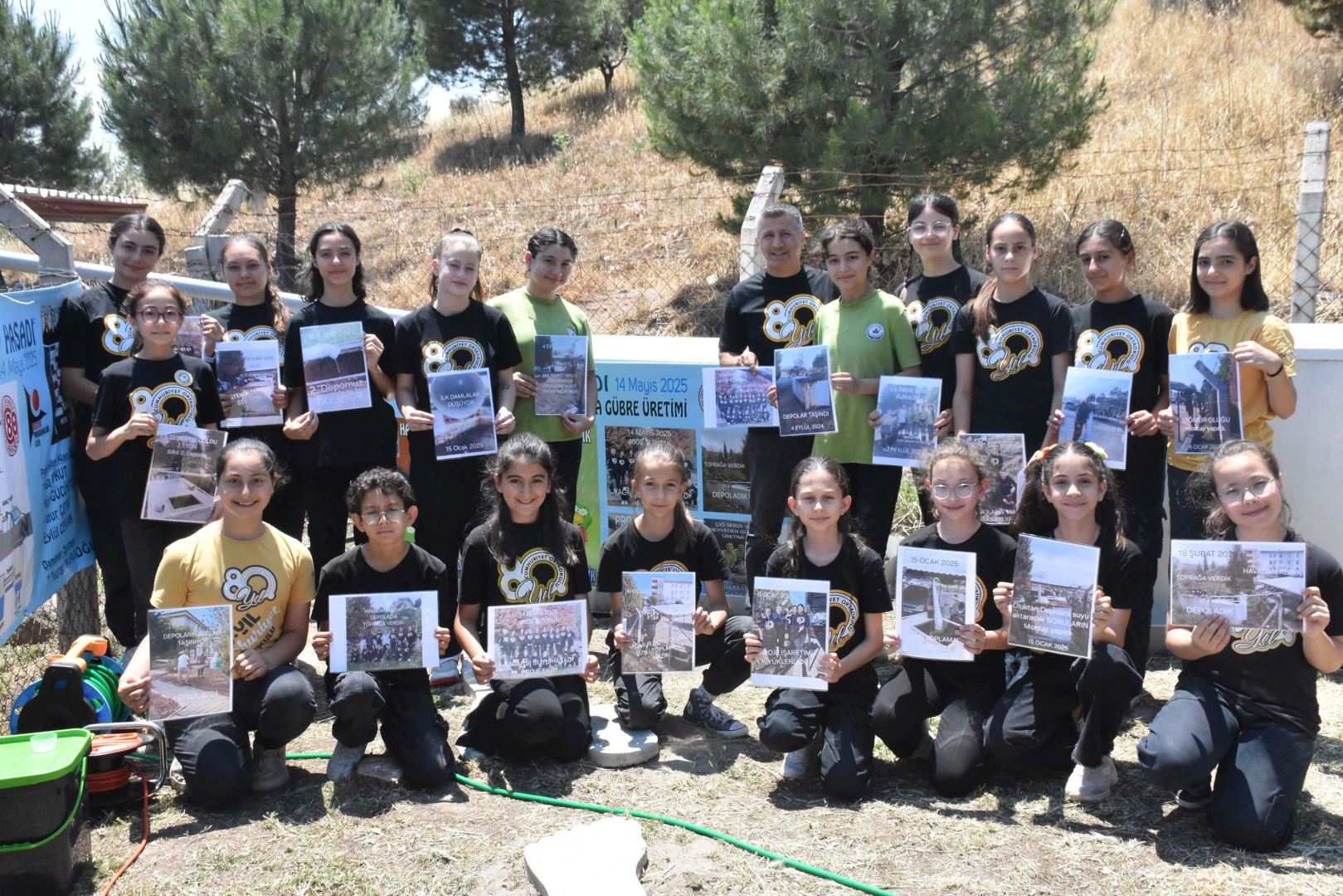 Seza Nur ALPDÜNDAR/İZMİR, (DHA)- İZMİR Bergama 80’inci Yıl Cumhuriyet Ortaokulu'nun Beden Eğitimi Öğretmeni Murat Paçacıoğlu ve öğrenciler, okul bahçesindeki ağaçların yazın kurumaması için 'Yağmur Suyu Hasadı, Çiğ Sebze Meyveden Katı ve Sıvı Gübre Üretimi Projesi'ni hayata geçirerek yağışlardan 4,2 ton su biriktirdi. Biriken suyla yazın 3 ay boyunca okulun bahçesindeki ağaçların düzenli olarak sulanması planlandı. Ayrıca, meyve sebzelerden organik gübre üretilerek ağaçların beslenmesine katkıda bulunuldu. Bergama 80’inci Yıl Cumhuriyet Ortaokulu'nun bahçesinde geçen yaz susuzluk nedeniyle bahçedeki 59 ağaçtan 4'ü kurudu. Okuldaki 20 öğrenci ve Beden Eğitimi Öğretmeni Murat Paçacıoğlu, kalan ağaçların bu yaz susuzluktan kurumaması için 'Yağmur Suyu Hasadı Çiğ Sebze Meyveden Katı ve Sıvı Gübre Üretimi Projesi'ni hayata geçirdi. Doğal kaynakların korunmasına katkı sağlayan projenin yağmur suyu hasadı kısmında okul otoparkının 67 metrekarelik çatısında bulunan oluklardan, depolara son 3 yağıştan toplamda 4,2 ton su biriktirildi. Biriken suyla yazın 3 ay boyunca okulun bahçesindeki ağaçların düzenli olarak sulanması planlandı. Projenin çiğ sebze ve meyve atıklarından katı ve sıvı organik gübre üretilmesi kısmında ise elde edilen gübre ile okul bahçesindeki ağaçların doğal yollarla beslenmesini sağladı.'OKULLARDA, EVLERDE, TARIMLA UĞRAŞAN HERKES BU PROJEYİ UYGULAYABİLİR'Küresel iklim krizi ve bunun getirdiği susuzluk nedeniyle geçen yaz okul bahçesindeki 4 tane ağacı kesmek zorunda kaldıklarını ifade eden Paçacıoğlu, "Kışın yağan yağmur sularını toplayıp yazın ağaçlarımızı sulamak, ağaçlarımızı bir daha kesmeye fırsat vermemek için projeye başladık. 67 metrekare yüzey alanında 3 yağmur döneminde 4,2 ton su topladık. Suyun olmadığı zamanda haftada 6 litre suyla 12 hafta ağaçlarımızı sulayacağız. Projemizin diğer ayağında çiğ sebze ve meyve atıklarından katı ve sıvı gübre elde ediyoruz. Topraktan aldığımız çiğ sebze ve meyveyi dönüştürerek tekrar toprağa sıvı ve katı bir şekilde gübre olarak veriyoruz. Yaklaşık 10 bin lira maliyetle projeyi hayata geçirdik. Okullarda, evlerde, tarımla uğraşan herkes bu projeyi uygulayabilir. Böylece hem şebeke suyunu kullanmamış hem susuzluğa ağaçlara bir faydası olmuş olur" dedi.Projelerinin amacının yağmur suyu hasadı ile çevreye bilinç kazandırmak ve su tasarrufu sağlamak olduğunu dile getiren 8'inci sınıf öğrencisi İlknur Çetin (14), "Bahçede 55 tane ağacımız var. Geçen sene kuruyan ve kesmek zorunda kaldığımız ağaçlar oldu. Biz de bu projeyi düşündük. Ağaçlarımız artık haftada bir veya iki kez sulanıyor" diye konuştu.'AĞAÇLARIMIZIN KURUMAMASI İÇİN BÖYLE BİR PROJE GELİŞTİRDİK'Yağmur suyu hasadını anlatan 8'inci sınıf öğrencisi Nisa Aykut (14) da "Yağan yağmur suları, çatımızdaki oluklar ve borular sayesinde depolarımıza aktarılıyor. Depomuzda biriktirdiğimiz suları hortum ve vanalar sayesinde hidroforumuza aktarıyoruz. Suları daha uzak mesafelerdeki ağaçları sulamak amacıyla hidrofor kullanıyoruz. Ağaçlarımızın kurumasını görmek çok üzücüydü. Okulumuzda birçok meyve ve zeytin ağaçlarımız var, hepsinin meyvelerini yiyoruz. Dut ağaçlarımızı çok seviyoruz. Ağaçlarımızın kurumaması için böyle bir proje geliştirdik. Umarım yaygınlaşır" diye konuştu.'ÇOK FAZLA SU TASARRUFU SAĞLADIK'Proje ile doğa ve ağaçlara katkı sunduğunu hissettiğini ifade eden 8'inci sınıf öğrencisi Nisa Gücüyeter (14), "İleride eğer bir bahçem olursa, ekip biçmeyle ilgilenirsem aynı uygulamayı bahçemde kullanabilirim. Çünkü çok tasarruf sağlayan bir uygulama. Çok fazla su tasarrufu sağladık. Hem yaşam döngülerini hem de geri dönüşümün ne kadar önemli olduğunu fark ettik" dedi. 'ATIKLARIMIZI VE ÇÖPLERİMİZİ AZALTIYORUZ'Meyve ve sebzelerden gübre üretimi sürecini anlatan 5'inci sınıf öğrencisi Eylül Ceylan (11) ise "Okulda gübre üretiyoruz. Bir kovanın içinde yağ hariç bütün mutfak atıklarını biriktiriyoruz, sonra üstüne kepek atıyoruz ve beklemeye alıyoruz. 2 hafta sonra gübreye dönüşüyor. Sıvı gübreyi süzüyoruz ve 5 litre suyla karıştırıyoruz. Bu suyla ağaçlarımızı suladığımızda daha gür, sağlıklı ve güzel büyüyorlar" dedi.Ceylan, sözlerini şöyle sürdürdü: "Evde ailemle de mutfak atıklarını biriktiriyoruz. Böylece atıklarımızı ve çöplerimizi azaltıyoruz. Hem de tarlamıza organik gübre sağlıyoruz. Herkese evlerinde bunu yapmasını tavsiye ederim." (DHA)