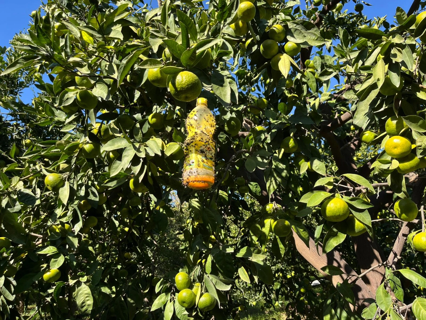 Alican GÜMÜŞ/HATAY, (DHA)-HATAY'da lise öğrencileri, tarımsal ihracatta ciddi ekonomik zararlara yol açan Akdeniz meyve sineğiyle mücadele için proje hazırladı. Öğrencilerin kimyasal içermeyen maddelerle pet şişelere yaptığı tuzakları kullanan çiftçiler, ürünün faydalı olduğunu söyledi.
