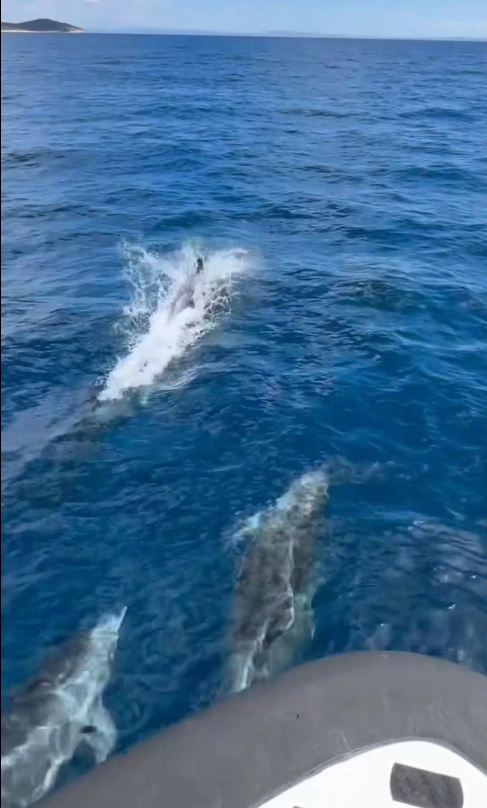 Ünsal YÜCEL/EDİRNE, (DHA)- EDİRNE’nin Saros Körfezi’ne kıyısı bulunan Enez ilçesi sahilinde tekneyle yarışan yunus sürüsü cep telefonuyla görüntülendi. Enez sahili açıklarında tekneyle gezintiye çıkanlar, yunus sürüsüyle karşılaştı. Aniden ortaya çıkan yunuslar ön kısımda tekneyle yarışıp, çeşitli hareketler yaparken, bu anlar ilgiyle izlendi. Yunusları izleyenler o anları cep telefonuyla kaydetti. (DHA)