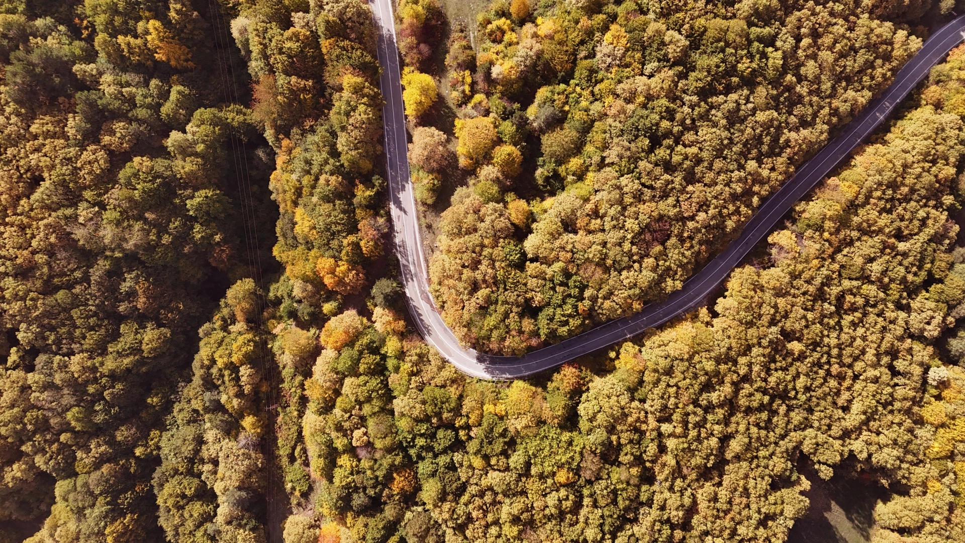 Mutlu YUCA/BOLU, (DHA)- BOLU'da, sonbaharın gelmesiyle birlikte Bolu-Seben-Kıbrıscık kara yolundaki yeşil ormanlarda sararan yaprakların oluşturduğu eşsiz manzara dron ile görüntülendi.