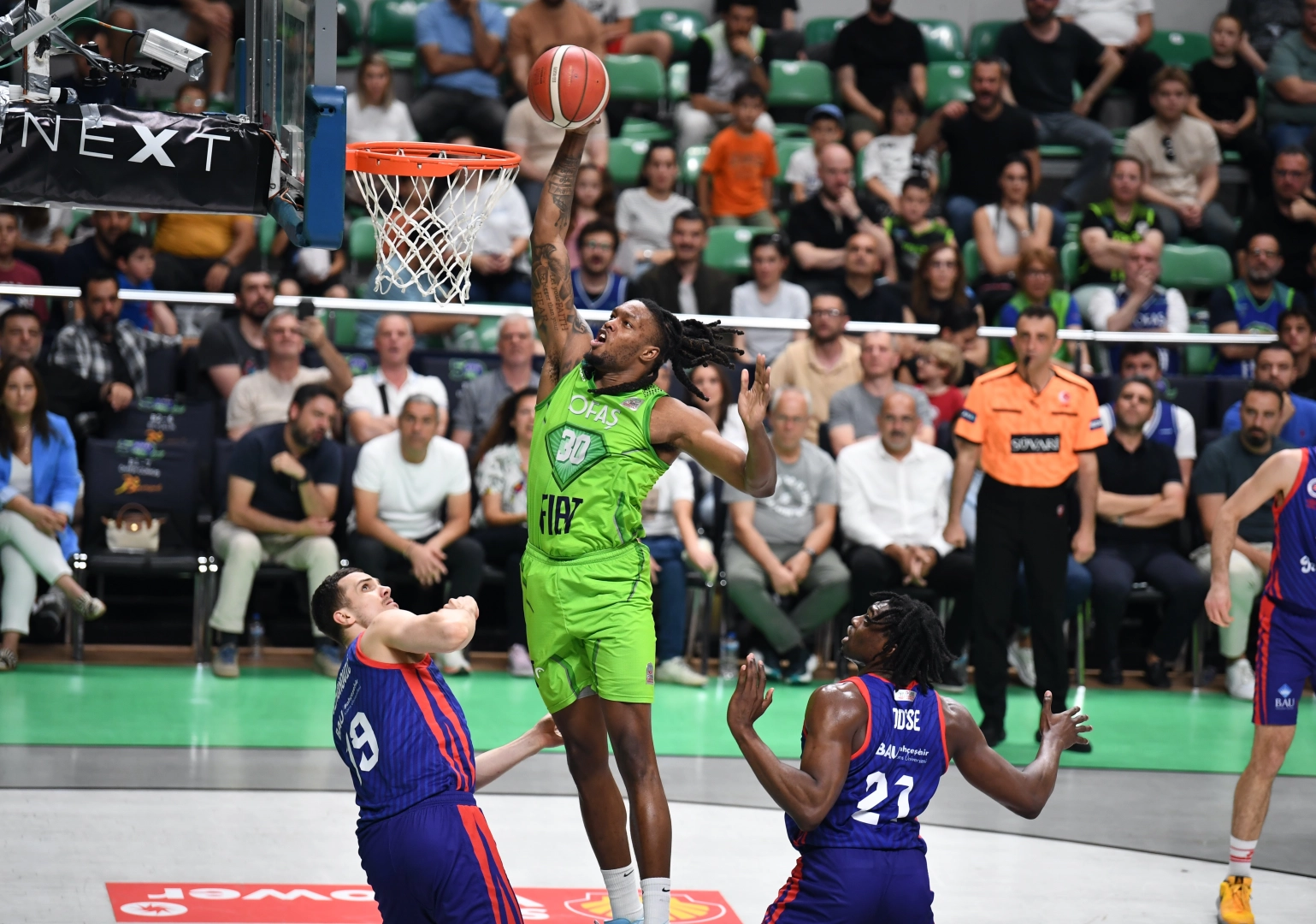 Memet Can YEŞİLBAŞ / BURSA, (DHA)SALON: TOFAŞHAKEMLER: Kerem Baki, Kaan Büyükçil, Alper ÖzgökTOFAŞ: Reed 34, Perez 21, Bankston 9, Yiğitcan Saybir 8, O'Brien 7, Trifunovic 5, Tolga Geçim 4, Pasecniks 4BAHÇEŞEHİR KOLEJİ: Cavanaugh 23, Kenan Sipahi 20, Furkan Korkmaz 14, Odiase 13, Simonovic 8, Ponitka 8, Bouteille 5, Şehmus Hazer 51'İNCİ PERİYOT: 30-22DEVRE: 53-393'ÜNCÜ PERİYOT: 68-68NORMAL SÜRE: 85-85Türkiye Basketbol Süper Ligi Play-Off Çeyrek Final 3'üncü maçında TOFAŞ, sahasında konuk ettiği Bahçeşehir Koleji'ne normal süresi 85-85 biten karşılaşmanın uzatma bölümünde 96-92 mağlup oldu. Bahçeşehir Koleji, bu galibiyetle seride durumu 2-1'e getirdi ve yarı finale yükseldi. (DHA)