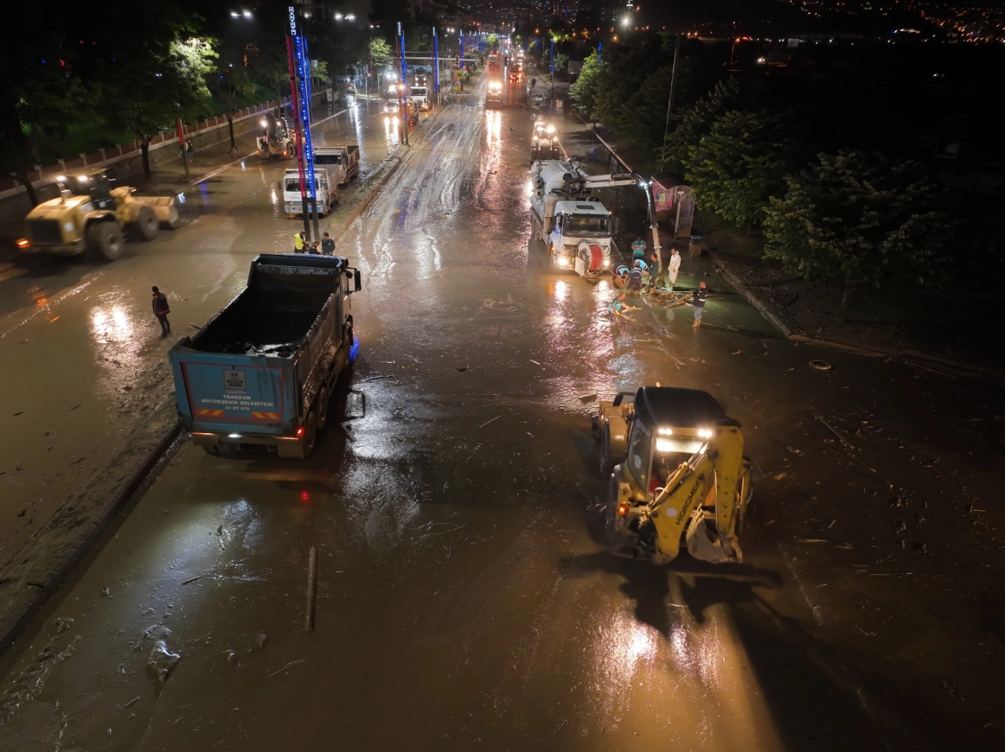 EKİPLERDEN SEL MESAİSİTrabzon'da etkili olan şiddetli yağışın yol açtığı sel ve su baskınlarından etkilenen Beşirli ve Moloz semtinde, yol ve kaldırım temizleme çalışmaları sürdürülüyor. Şehrin en hareketli bölgeleri olan iki noktada selin getirdiği çamur birikintilerinin temizlenmesi için yoğun çaba harcayan Büyükşehir Belediyesi ekiplerinin çalışmalarının sabaha kadar süreceği belirtildi.Büyükşehir Belediye Başkanvekili Faruk Kanca, caddeler, yaya kaldırımları ve su baskınına uğrayan iş yerlerindeki çamur birikintilerinin temizlenmesi için yoğun bir çalışma yürütüldüğünü belirterek, "Başkanımız Ahmet Metin Genç’in talimatları doğrultusunda bütün ekiplerimizi, sel ve su baskınlarından en çok etkilenen Moloz ve Beşirli semtlerimize yönlendirdik. 184 personel ve 165 araç ile çalışmalarımız sürüyor. Yeni günün ilk ışıklarıyla birlikte hayatı normale döndürmeyi, yaya kaldırımlarımızı sel artıklarından tamamen temizlemeyi ve esnafımızın dükkanlarını sorunsuz olarak açabilmelerini sağlamayı hedefliyoruz" dedi. (DHA)Nurgül GÜNAYDIN/ TRABZON, (DHA)