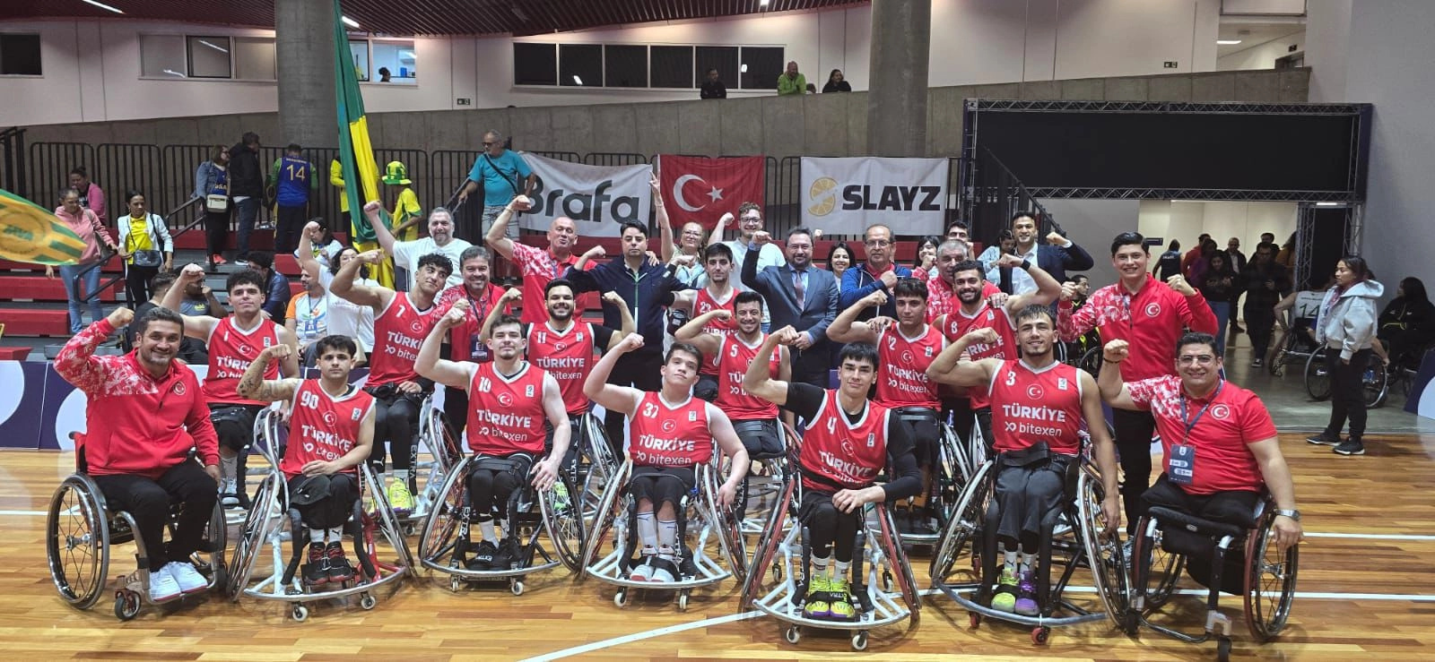 Gökhan İÇKİLLİ/SAMSUN, (DHA)- BREZİLYA’da düzenlenen 2025 IWBF U23 Dünya Şampiyonası’nda mücadele eden U23 Tekerlekli Sandalye Basketbol Milli Takımı, A grubunun son maçında Brezilya’yı 69-34’lük skorla mağlup ederek adını çeyrek finale yazdırdı. Brezilya’nın Sao Paulo kentinde oynanan IWBF U23 Dünya Şampiyonası’nda U23 Tekerlekli Sandalye Basketbol Milli Takımı A grubunun son maçında Brezilya’yı 69-34 yendi. Milli takım çeyrek finalde Amerika ile karşılaşacak. Karşılaşma bugün TSİ ile 23.45’de başlayacak. Brezilya maçını, Türkiye Cumhuriyeti Sao Paulo Başkonsolosu Özgür Uludüz, Türkiye Bedensel Engelliler Spor Federasyonu Başkan Vekili Musa Tahsin Doğan, yönetim kurulu üyeleri ve taraftarlar da izledi.Brezilya maçı sonrası açıklama yapan Türkiye Bedensel Engelliler Spor Federasyonu Başkan Vekili Musa Tahsin Doğan, “Bu galibiyet için başta teknik ekibimiz ve sporcularımız olmak üzere tüm takımımızı yürekten kutluyorum. Sahada gösterilen kararlılık ve birliktelik, geleceğe dair umutlarımızı daha da güçlendirdi. Ayrıca Brezilya’da bizleri yalnız bırakmayan, her koşulda desteğini hissettiren Sao Paulo Başkonsolosumuz Özgür Uludüz’e ve ekibine içten teşekkür ediyorum. Bu başarı, ülkemiz adına önemli bir gurur vesilesidir” dedi.Galip geldikleri için mutlu olduklarını ifade eden Federasyon Yönetim Kurulu Üyesi İzzet Soydabircan, “Genç millilerimizin ortaya koyduğu oyun bizleri hem duygulandırdı hem de gururlandırdı. Sahadaki azim, kenetlenme ve inanç örnek gösterilecek nitelikteydi. Buradaki her anımızda yanımızda olan Başkonsolosumuz Özgür Uludüz ve değerli heyetine şükranlarımızı sunuyorum. Bu anlamlı galibiyeti başta milletimize, sonra da burada bizleri coşkuyla destekleyen vatandaşlarımıza armağan ediyoruz” diye konuştu. (DHA)