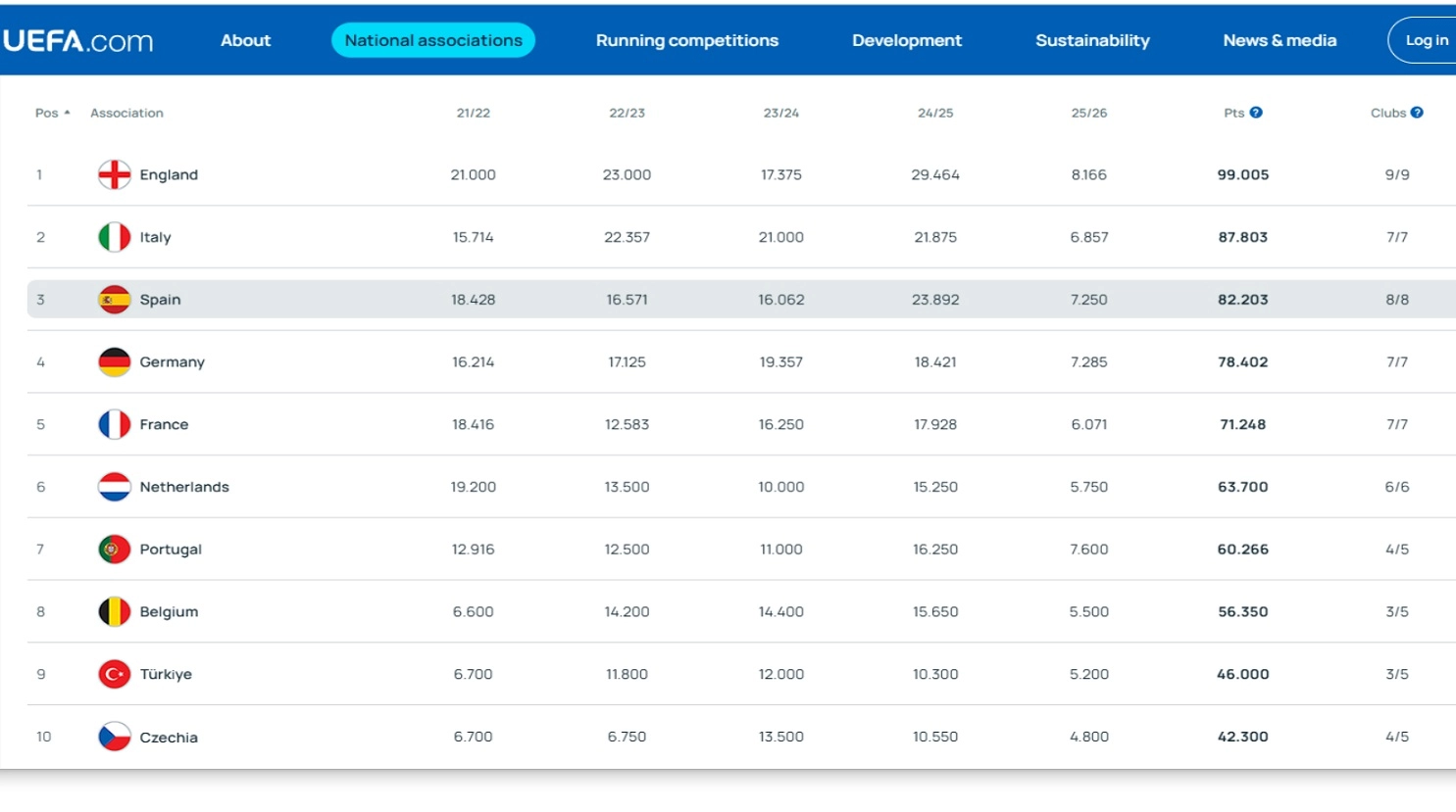 Türk takımlarının Avrupa'da bu haftayı da 3 maçta 3 galibiyet ile tamamlaması Türkiye'yi UEFA ülke puan sıralamasında avantajlı konuma getirdi. Türkiye, UEFA ülke puan sıralamasında bu haftaya kadar 44.800 puanla 9'uncu sırada yer alıyordu. Türk takımları üst üste 2'nci kez haftayı 3'te 3 ile tamamlayarak bir üst basamağımızda yer alan Belçika ile puan farkının iyice açılmasının önüne geçti. Altımızdaki Çekya ile ise farkı koruyoruz.