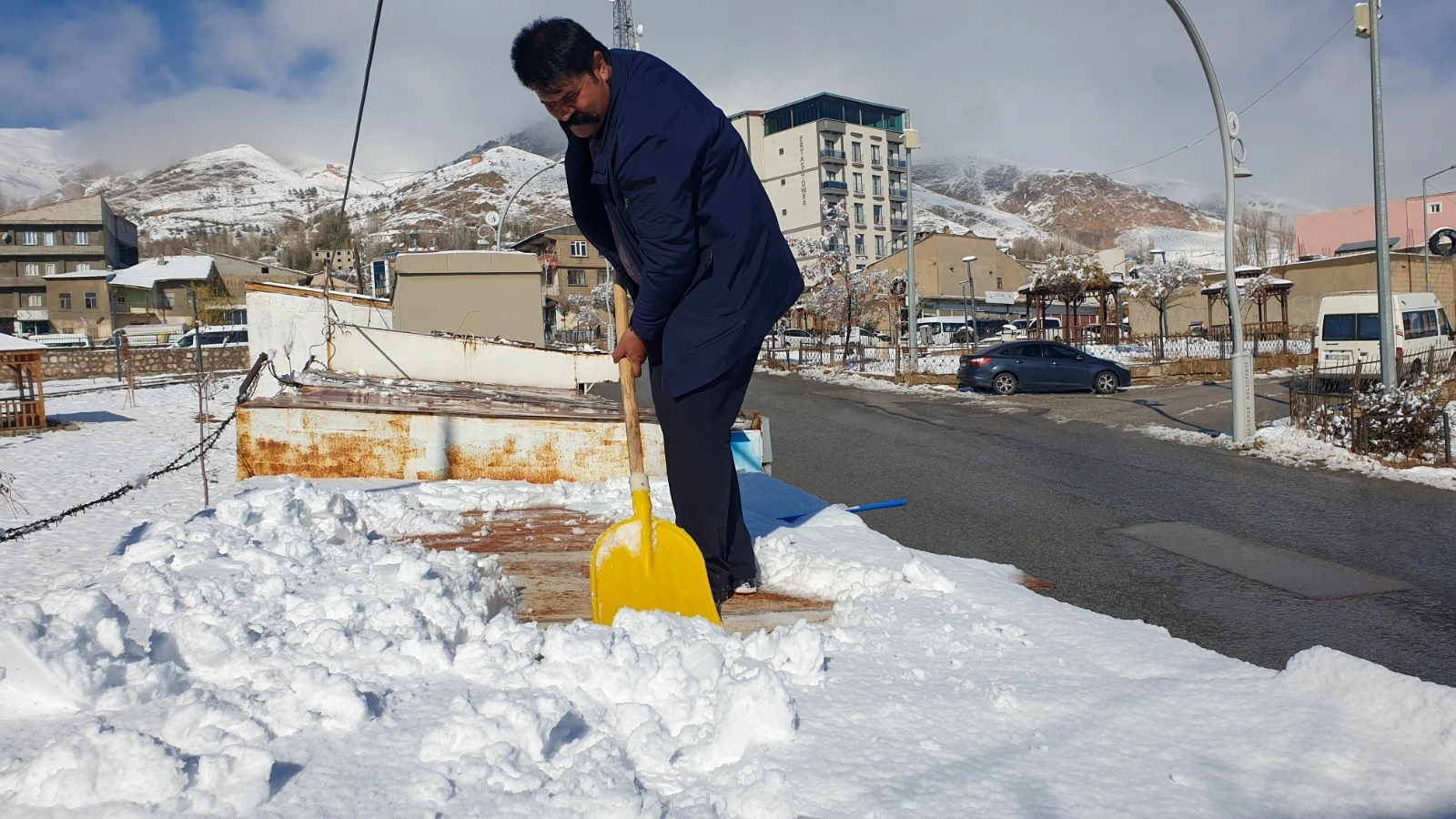 Harun AKSU/BAŞKALE, (Van), (DHA)- VAN'ın Başkale ilçesinde dün gece etkili olan ve belirli aralıklarla sabaha kadar devam eden kar yağışı, ilçeyi beyaza bürüdü. Güne karla uyanan esnaf, iş yerlerinin çatıları ve önündeki karları temizledi.